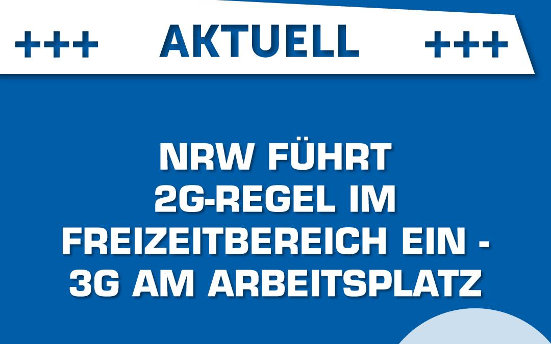 September die 2G-Corona-Regel ein. Deshalb könnte aus den 3G-Regeln die in vielen Bereichen in NRW vorherrschen 2G-Regeln werden. Bislang haben in NRW nur einzelne Städte oder Veranstalter die 2G-Regel eingeführt das Land als Ganzes aber nicht. 2G-Regeln in NRW.